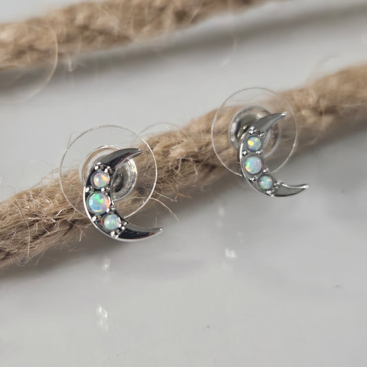 Pendientes Luna con ópalo en Plata de Ley