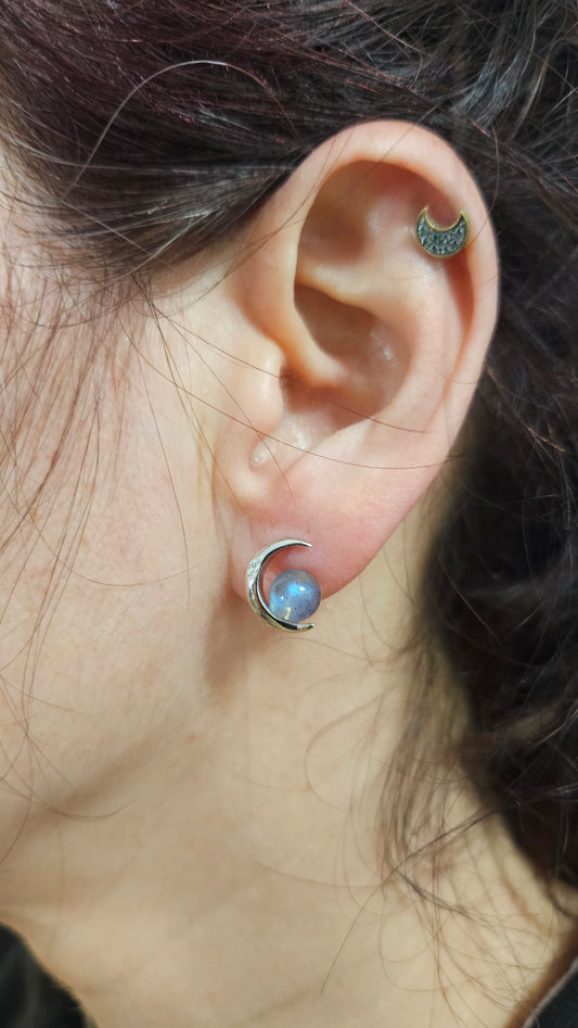 Pendientes Luna con Labradorita en Plata de Ley