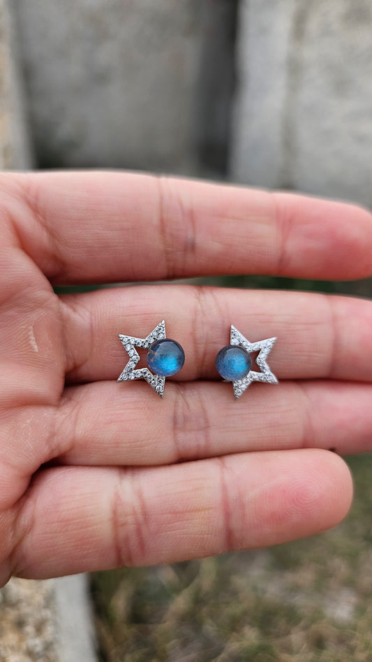 Pendientes estrella y Labradorita en Plata de Ley